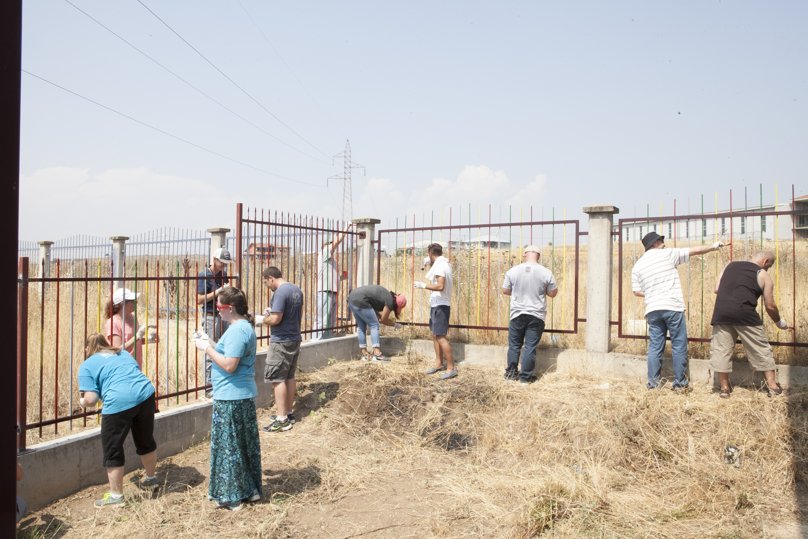 Following our time in the eastern mountains, we returned to the blistering heat of Skopje and spend parts of two days helping complete the fence project that had begun months earlier when I led a Trinity School team there. As you may recall from earlier reports that I have posted, Sasha and Marija have been cultivating relationships in the highly populated Gypsy community of Skopje for many years. By beginning a basic feeding and education program for young Gypsy children, they have been able to use the Bible as the key educational tool and share the love of Jesus with the kids. For many of these children, it is the only consistent source of nutrition and love they receive. The buildings used for feeding and education are separated by an open field and had been in need of a protective fence. The TCS team (back in March) helped make and pour the concrete footing for the fence, and then this Betenbough team helped complete the project by aiding local welders and erecting the tall metal fence. This particular fence project did not take near as long as anticipated, so we creatively found some additional work we could do that just so happened to involve burning a field of weeds! (Yes, intentionally. Yes, highly dangerous. And yes, quite fun!) In addition to the fence project, we also had the privilege of being a part of the church service in Skopje for the church planted last year by Sasha and Marija.